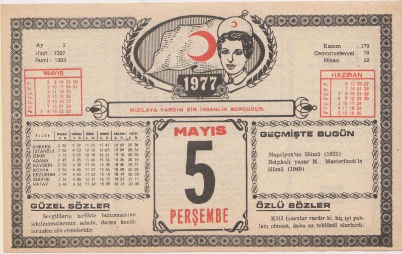 5 Mayıs 1977 - Kızılay Takvim Yaprağı, 3 gün önce satışa sunulmuştur.