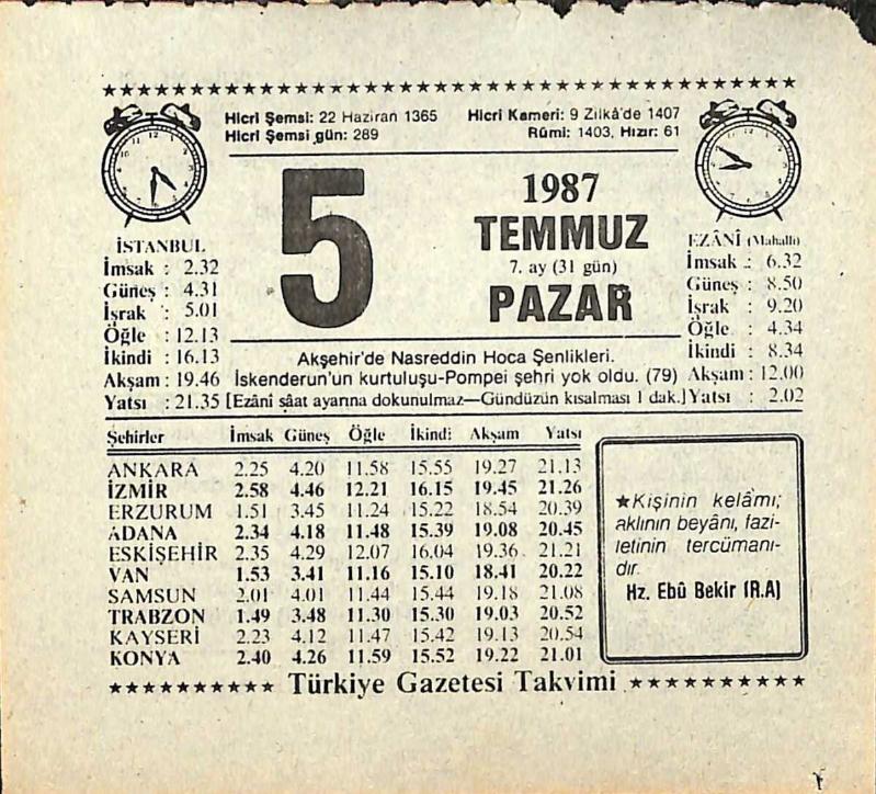 5 Temmuz 1987 Takvim Yaprağı - Doğum Günü Hediyesi EFMN13817, en son 22 gün önce güncellenmiştir.