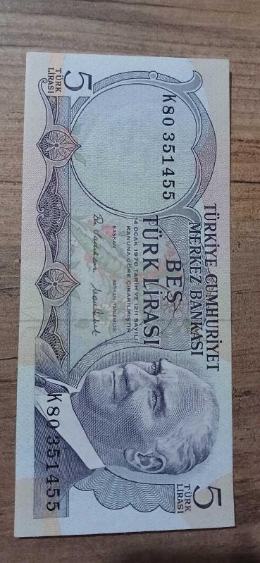 5 Türk lirası başlıklı ürün, Efemera, Müzik, Sinema > Nümismatik, Para, Madalya > Kağıt Paralar > Cumhuriyet Dönemi > 6. Emisyon kategorisi altında İkinci El olarak satılmaktadır.