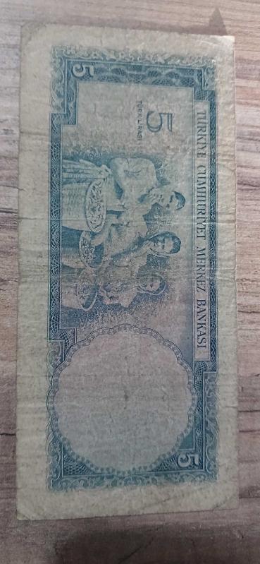 5 Türk lirası başlıklı ürün, Efemera, Müzik, Sinema > Nümismatik, Para, Madalya > Kağıt Paralar > Cumhuriyet Dönemi > 5. Emisyon kategorisi altında İkinci El olarak satılmaktadır.