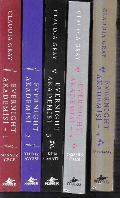 5 cilt takım Evernight Akademisi sonsuz gece, yıldız avcısı, kum saati, yaşamın ötesi, balthazar, Claudia Gray tarafından kaleme alınmıştır. Kitap 2014 yılında Pegasus Yayıncılık tarafından [İstanbul] 9786053432753 ISBN kodu ile yayınlanmıştır. Satışta olan kitap, yayınevinin 1. baskısıdır. Bu baskının çevirisi Sevinç Seyla Tezcan tarafından yapılmıştır. 1 sayfadır. Sayfa bilgisi 2. hamur olarak belirtilmiştir. 5 cilt takım Evernight Akademisi sonsuz gece, yıldız avcısı, kum saati, yaşamın ötesi, balthazar adlı eser Türkçe dilindedir.