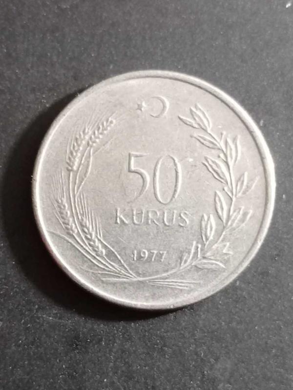 50 Kuruş 1977 Madeni Para. Eski Koleksiyon Madenî Para. Eski Para. Hatıra Para.