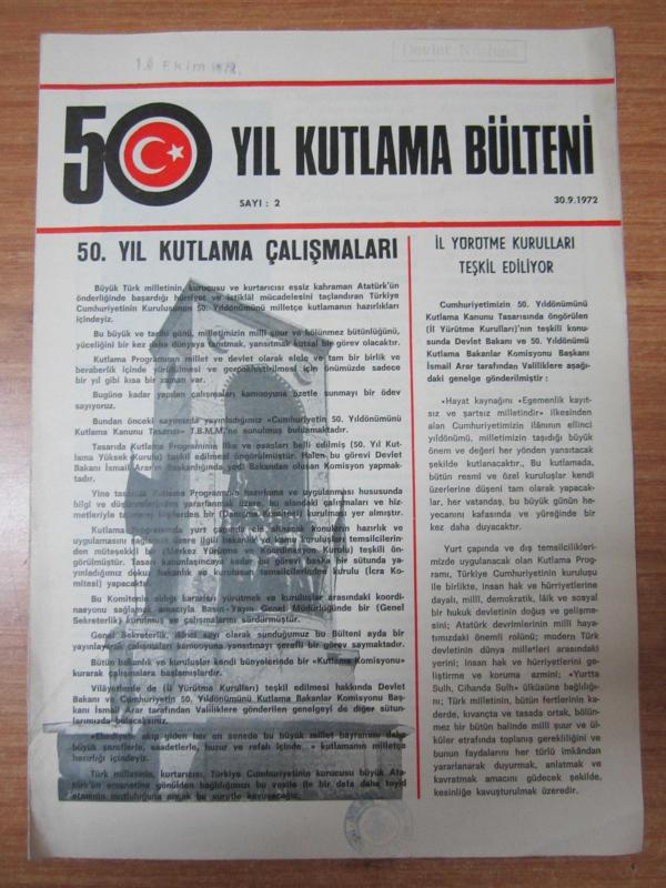 50.YIL KUTLAMA BÜLTENİ - 30.09.1972 - SAYI 2 - Cumhuriyetimizin 50. Yıldönümü Kutlama Genel Sekreterliği adlı eser Türkçe dilindedir.