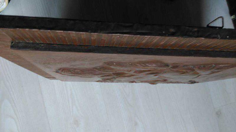 ** BAKIR KABARTMA HIRÇIN AT TABLOSU ** Toplam olarak 54 x 49 cm.ebadında, ağır ahşap kaidesi üzerinde,tahminen 5 kilo cıvarında ağırlığı olan, bakır kabartma hırçın at temalı tablodur...