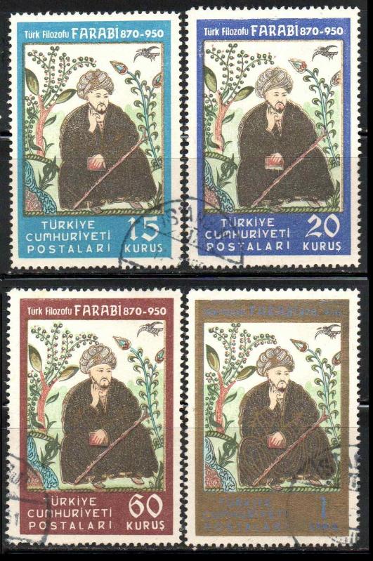 FARABİ'NİN ÖLÜMÜNÜN 1000. YILDÖNÜMÜ TÜM PULLAR DAMGALIDIR. BASIM TARİHİ: 1 ARALIK 1950 İSFİLA 2024 KATALOK FİYATI: 350,00 LİRA