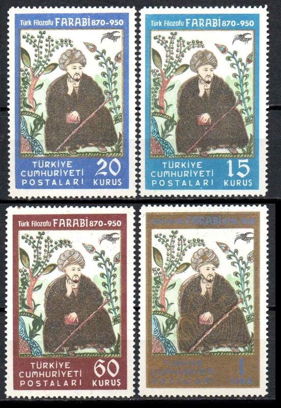 FARABİ'NİN ÖLÜMÜNÜN 1000. YILDÖNÜMÜ PULLAR DAMGASIZ VE ORJİNAL ZAMKLIDIR. ARKALARINDA ÇOK HAFİF ŞARNNİYER İZİ VARDIR. BASIM TARİHİ: 1 ARALIK 1950 İSFİLA 2024 KATALOK FİYATI: 400,00 LİRA