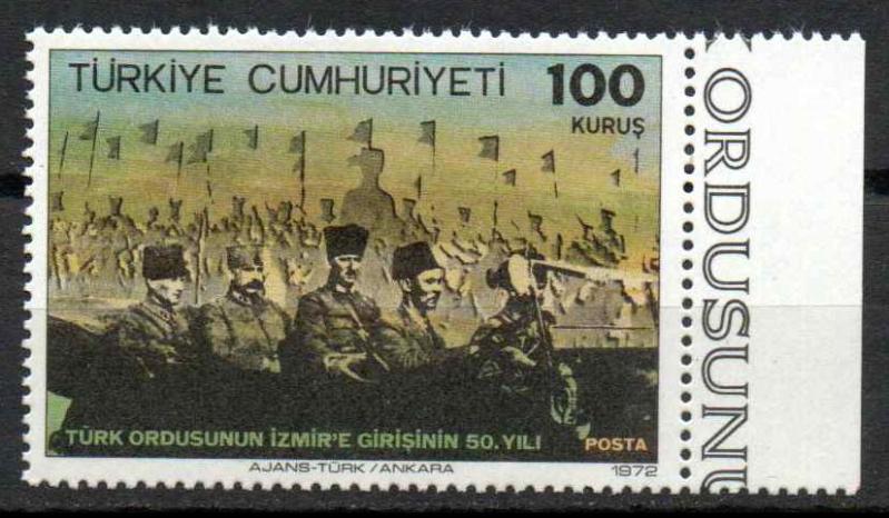 TÜRK ORDUSU'NUN İZMİR'E GİRİŞİNİN 50. YILI PUL DAMGASIZ VE ORJİNAL ZAMKLIDIR BASIM TARİHİ: 9 EYLÜL 1972 İSFİLA 2024 KATALOK FİYATI: 40,00 LİRA