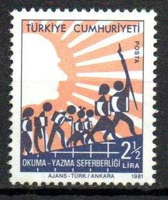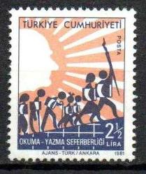 OKUMA-YAZMA SEFERBERLİĞİ SÜREKLİ POSTA PULU PUL DAMGASIZ VE ORJİNAL ZAMKLIDIR. BASIM TARİHİ: 24 ARALIK 1981 İSFİLA 2024 KATALOK FİYATI: 8,00 LİRA