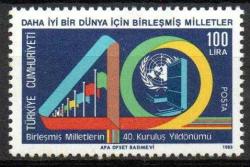 BİRLEŞMİŞ MİLLETLERİN 40 KURULUŞ YILDÖNÜMÜ DAMGASIZ VE ORJİNAL ZAMKLIDIR. BASIM TARİHİ: 24 EKİM 1985 İSFİLA 2024 KATALOK FİYATI: 25,00 LİRA