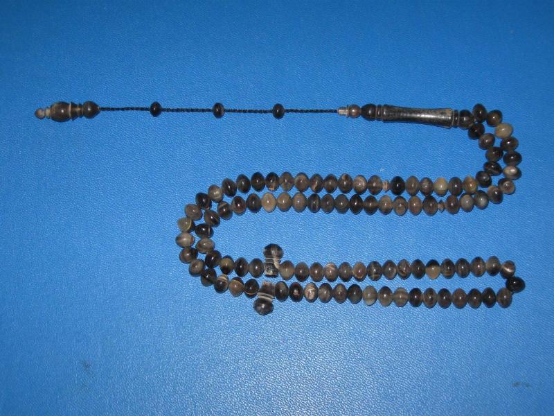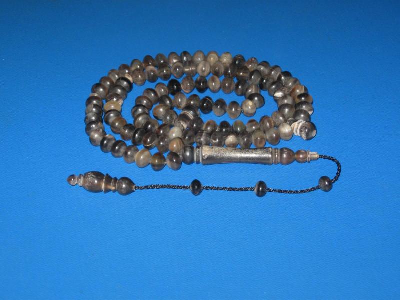 **(58)**BUTON KESİM TANELİ ZARİF BİR 99'LU BUFFALO BOYNUZU TESBİH başlıklı antika/koleksiyon objesinin menşei belirtilmemiştir. 2000 ve sonrası dönemine aittir.
