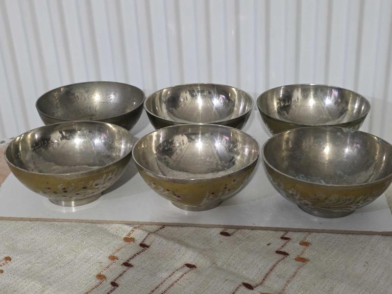 6 ADET PİRİNÇ HURMA TASI INDİA 11 CM ÇAPINDA BAZILARI DUA YAZILI, en son bir saat önce güncellenmiştir.