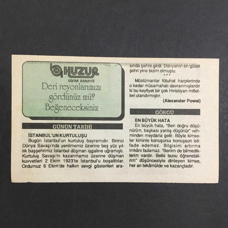 6 EKİM 1992 -TAKVİM YAPRAĞI-DOĞUM GÜNÜ HEDİYESİ-HUZUR TAKVİMİ,İSTANBULUN KURTULUŞU 1923,ÇANAKKALENİN KUIRTULUŞU 1922,ÇOCUĞUNUZA İSİM,EN BÜYÜK HATA, en son 8 ay önce güncellenmiştir.