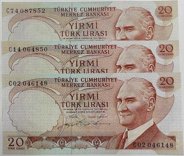 6 EMİSYON 20 LİRA SERİ C02-C14-C74 HARFLERİ ÇİLALTI