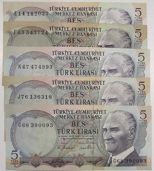 6 EMİSYON 5 LİRA SERİ E-F-G-J-K HARFLERİ ÇİLALTI 5 ADET başlıklı ürün, Efemera, Müzik, Sinema > Nümismatik, Para, Madalya > Kağıt Paralar > Cumhuriyet Dönemi > 6. Emisyon kategorisi altında İkinci El olarak satılmaktadır.