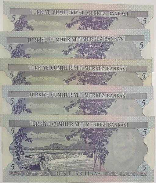6 EMİSYON 5 LİRA SERİ E-F-G-J-K HARFLERİ ÇİLALTI 5 ADET, 1 yıl önce satışa sunulmuştur.