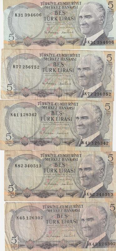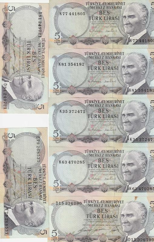 6. EMİSYON 5 TL LOTU 1.TERTİP ve 2.TERTİP 7 ADET ÇİL ve 5 adet ÇT başlıklı ürün, Efemera, Müzik, Sinema > Nümismatik, Para, Madalya > Kağıt Paralar > Cumhuriyet Dönemi > 6. Emisyon kategorisi altında İkinci El olarak satılmaktadır.