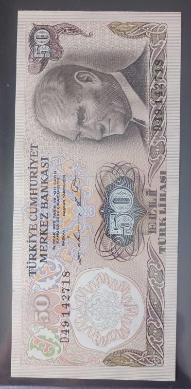 6.EMİSYON 50 TÜRK LİRASI SERİ: D49 142718- ÇİL başlıklı ürün, Efemera, Müzik, Sinema > Nümismatik, Para, Madalya > Kağıt Paralar > Cumhuriyet Dönemi > 6. Emisyon kategorisi altında İkinci El olarak satılmaktadır.