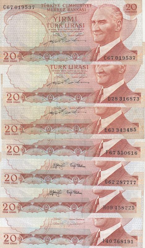 6. EMİSYON C - D - E - F - G - H - I SERİSİ 7 ADET 20 LİRA / ÇOK ÇOK TEMİZ KONDİSYON