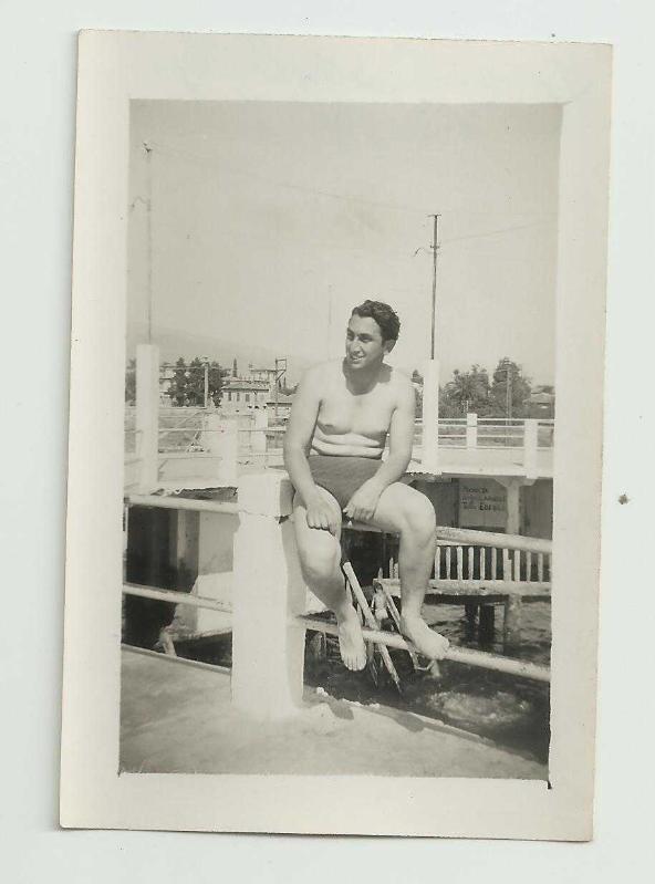 ** 6 EYLÜL 1946 İZMİR KARŞIYAKA PLAJINDA MAYOLU BİR BEY DENİZİ DÜŞÜNÜYOR ** Küçük ebatta ve gayet temiz durumda,arkası yazılı,eski bir fotoğraf...