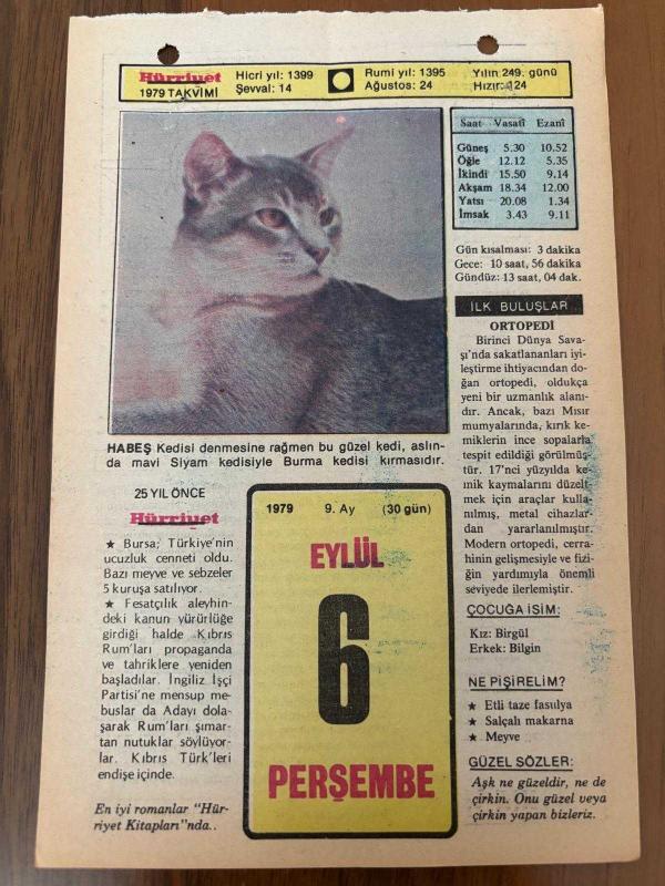 6 EYLÜL 1979 - TAKVİM YAPRAĞI - DOĞUM GÜNÜ HEDİYESİ - HÜRRİYET TAKVİMİ - PİS BİR İŞ ROMANI - Büyük Lice depremi 3.000 ölü (1975) - İstanbul ve İzmir'de 6/7 Eylül olayları (1955) - Kurtuluş Günü: Balıkesir Balya, Gönen, Savaştepe, Söke, Bursa-Yenişehir ve İnegöl, Manisa-Akhisar ve Ahmetli başlıklı ürün, Efemera, Müzik, Sinema > Belge ve Evraklar > Takvimler kategorisi altında İkinci El olarak satılmaktadır.