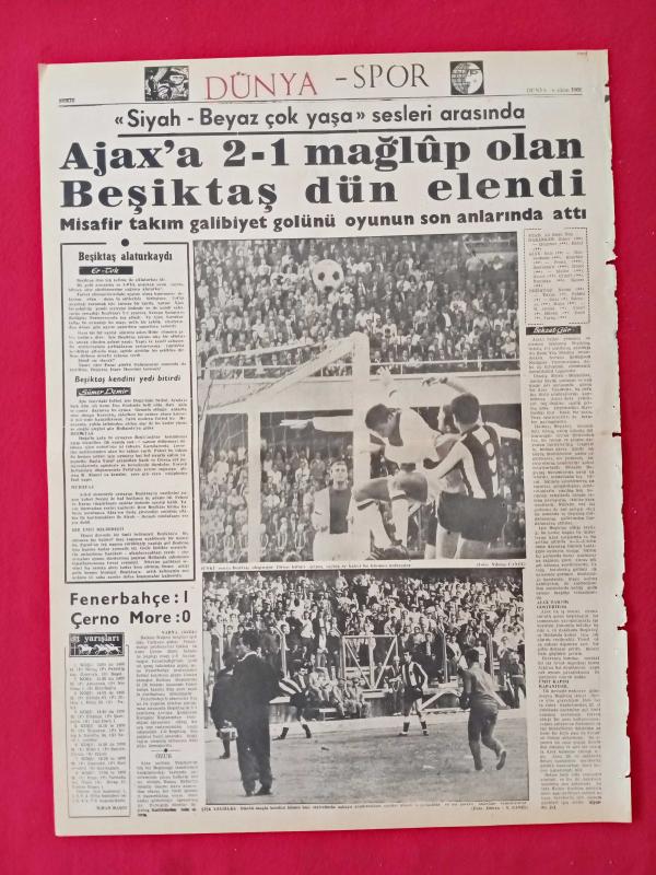 6 Ekim 1966 - Dünya Gazetesi Spor Sayfası - Beşiktaş 1-2 Ajax