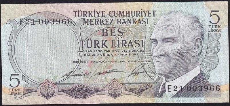 6.Emisyon 1.Tertip 5 Lira E21 003966 Çilaltı Çil (X-9), bir ay önce satışa sunulmuştur.