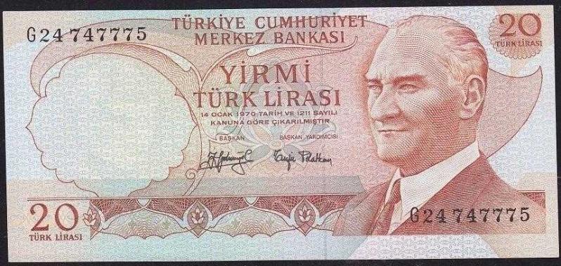 6.Emisyon 3.Tertip 20 Lira G24 747775 Çilaltı Çil (KAYIK BASKI- GÜZEL NUMARA) (X-61) başlıklı ürün, Efemera, Müzik, Sinema > Nümismatik, Para, Madalya > Kağıt Paralar > Cumhuriyet Dönemi > 6. Emisyon kategorisi altında İkinci El olarak satılmaktadır.