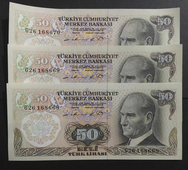 6.Emisyon 50 LİRA LOTU (G26/1.Tertip) ÇİL TCKL26 “3 Adet Seri Takipli” NÜMİSMANİA YILDIRIM KOLEKSİYON GARANTİSİ İLE İADESİ VARDIR.