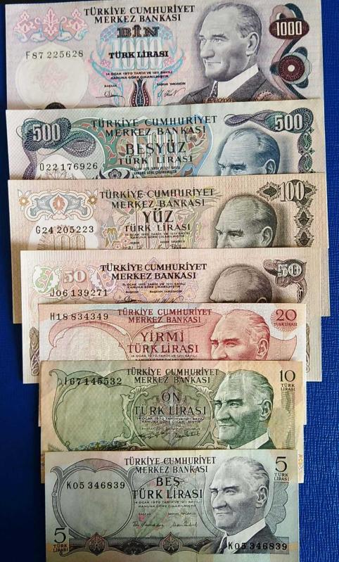6. Emisyon Tam Set Para Lotu (Resimdeki Aynı Ürünler Koruma Kabı İçinde Gönderilecektir) (1000,500 liralar ÇÇT KONDİSYONDA, 100 ,50,20,10,5 LİRALAR ÇİL VE ÇİL ALTI) (52)