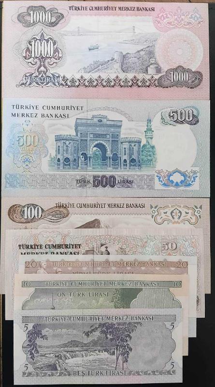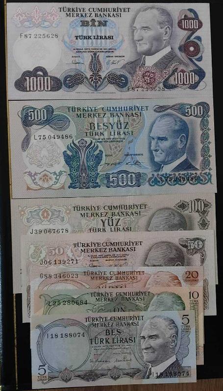 6. Emisyon Tam Set Para Lotu (Resimdeki Aynı Ürünler Koruma Kabı İçinde Gönderilecektir) (1000 liralar ÇİLALTI KONDİSYONDA,500,100 ,50,20,10,5 LİRALAR ÇİL ) (82)