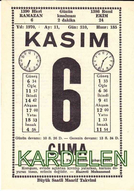 6 KASIM 1970 SAATLİ MAARİF TAKVİMİ YAPRAĞI, en son 1 yıl önce güncellenmiştir.