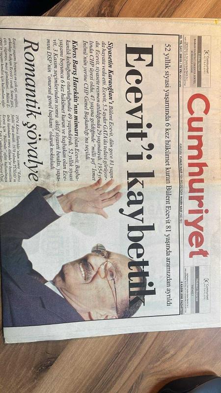 6 KASIM 2006 BÜLENT ECEVİT ÖLÜM HABERLİ CUMHURİYET GAZETESİ adlı eser Türkçe dilindedir.