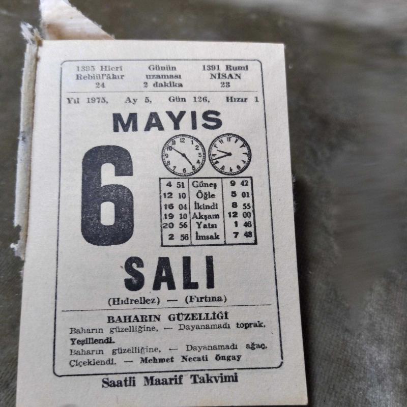 6 MAYIS 1975 SAATLİ MAARİF TAKVİM YAPRAĞI, en son 1 yıl önce güncellenmiştir.