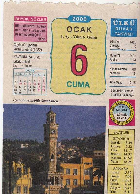 6 OCAK 2006 TAKVİM YAPRAĞI, 4 yıl önce satışa sunulmuştur.