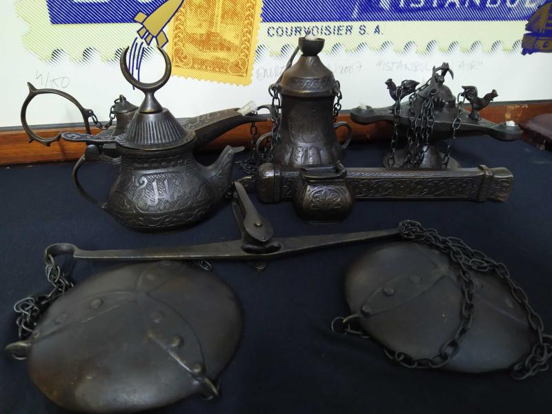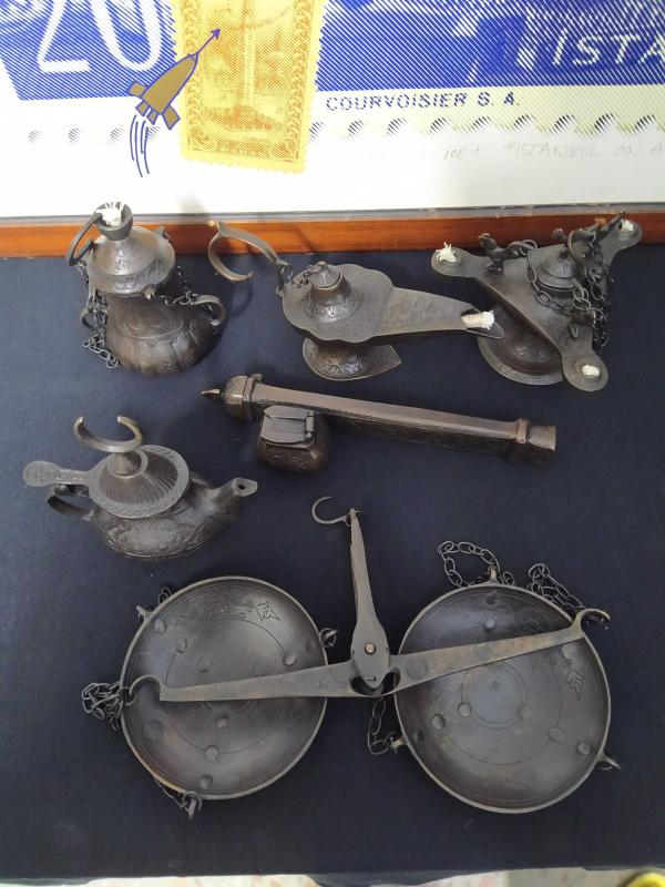 6 PARÇA BÜYÜK KANDİL TERAZİ VE DİVİT SETİ başlıklı antika/koleksiyon objesi Türkiye menşe’lidir. Objenin ait olduğu dönem bilinmeketedir.