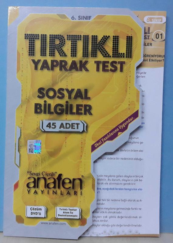 Kitap 2014 yılında ANAFEN YAYINLARI tarafından yayınlanmıştır. 6. SINIF SOSYAL BİLGİLER TIRTIKLI YAPRAK TEST (45 TEST) (ÇÖZÜMLÜ DVD) - 2.EL adlı eser Türkçe dilindedir.