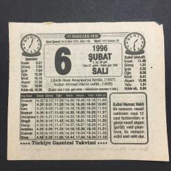 6 ŞUBAT 1996 -TAKVİM YAPRAĞI-DOĞUM GÜNÜ HEDİYESİ-TÜRKİYE GAZETESİ TAKVİMİ,LAİKLİK İLKESİ ANAYASAYA KONDU,1937,SULTAN AHMET HANIN VEFATI 1695,PEYNİR