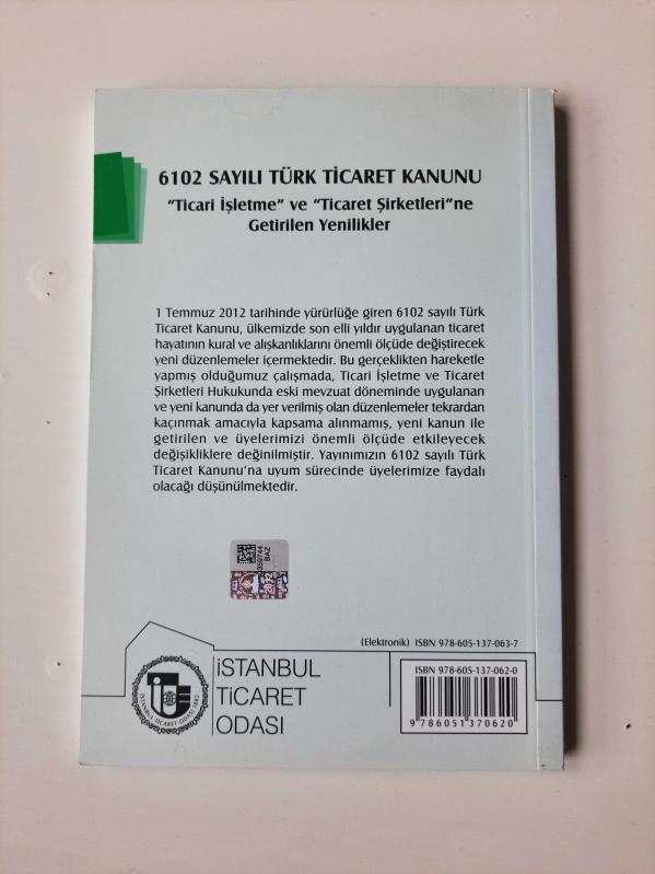 6102 sayılı Türk Ticaret Kanunu, İstanbul Ticaret Odası tarafından kaleme alınmıştır. Kitap Rehber Yayınlar tarafından yayınlanmıştır. Bu baskının çevirisi Ni tarafından yapılmıştır. 6102 sayılı Türk Ticaret Kanunu adlı eser Türkçe dilindedir.