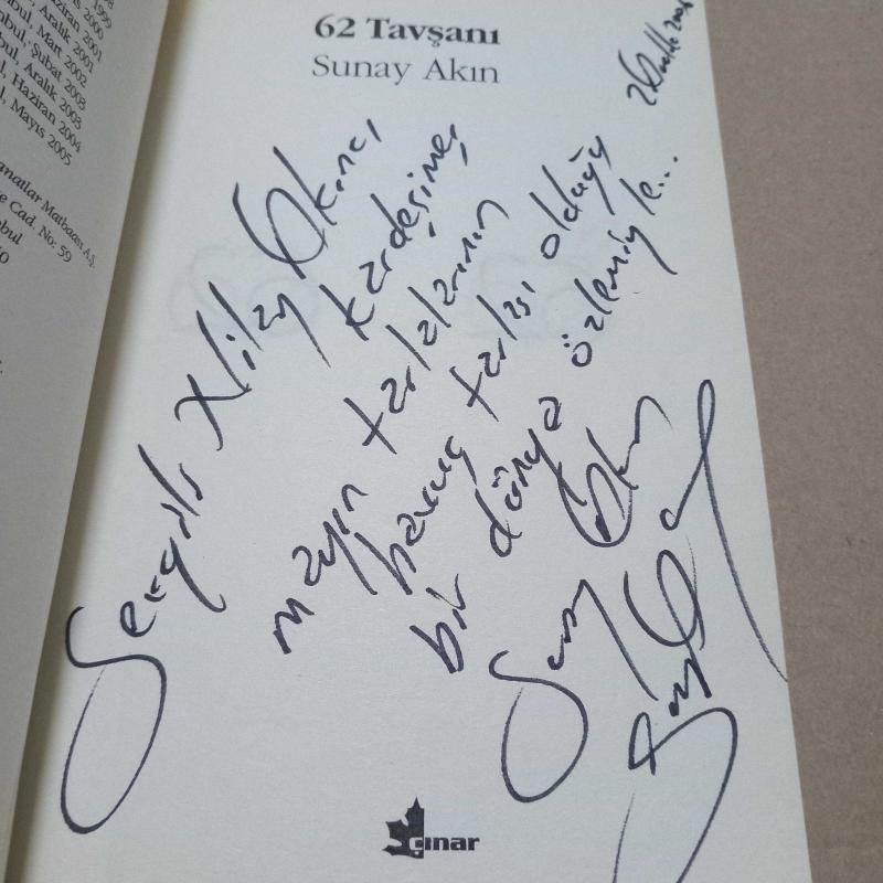 62 TAVŞAN( imzalı), SUNAY AKIN tarafından kaleme alınmıştır. Kitap 2005 yılında ÇINAR YAYINLARI tarafından yayınlanmıştır. Satışta olan kitap, yayınevinin 13. baskısıdır. 62 TAVŞAN( imzalı) adlı eser Türkçe dilindedir.