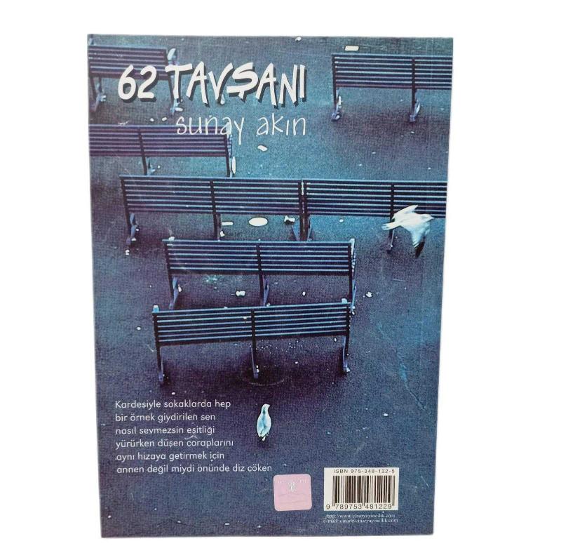 62 Tavşanı, Sunay Akın tarafından kaleme alınmıştır. Kitap 2004 yılında ÇINAR YAYINLARI tarafından [İstanbul] 9786053601753 ISBN kodu ile yayınlanmıştır. Satışta olan kitap, yayınevinin 12. baskısıdır. 61 sayfadır. Sayfa bilgisi kitap kağıdı olarak belirtilmiştir. 62 Tavşanı adlı eser Türkçe dilindedir.
