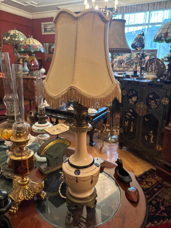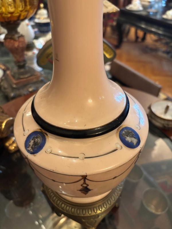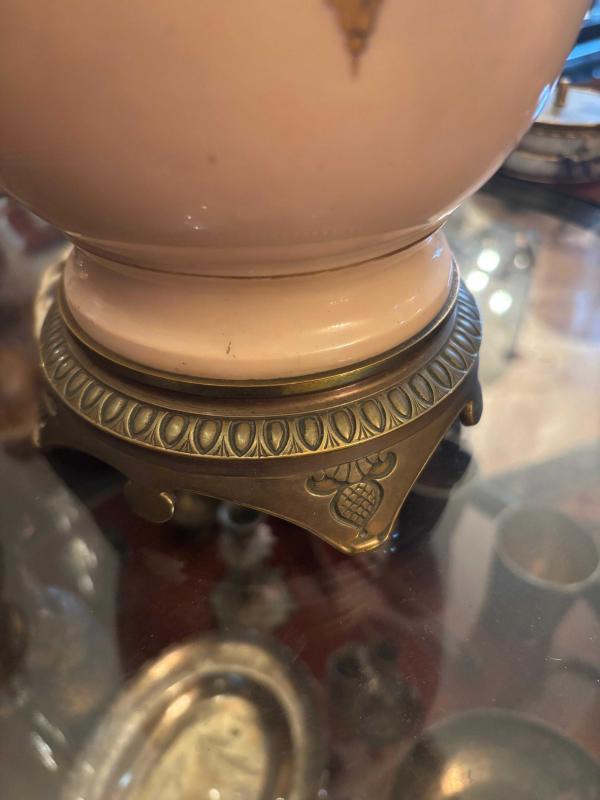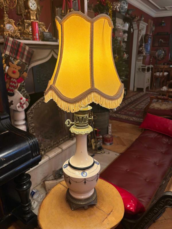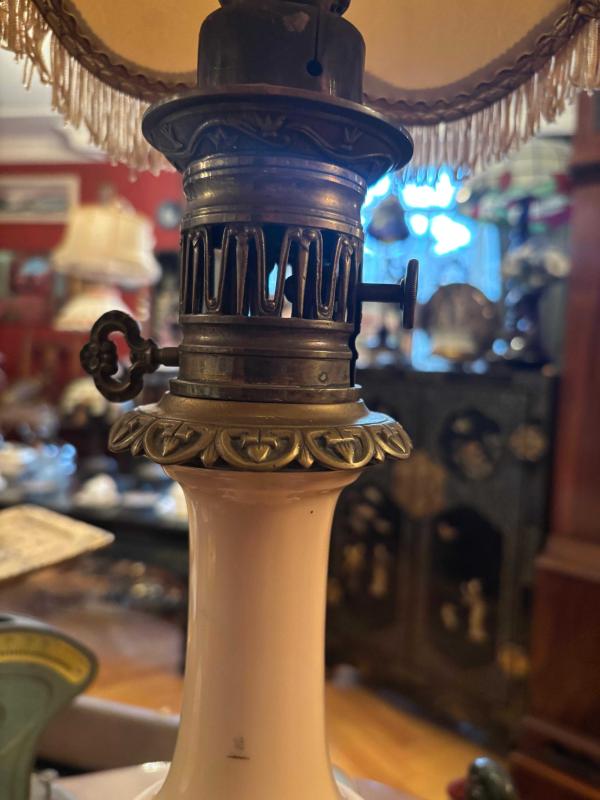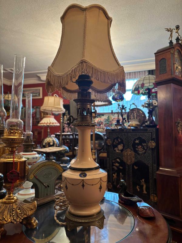 66 cm boyunda porselen ve pirinçten Fransız gaz lambası şeklinde abajur, 8 gün önce kitantik’te satışa sunulmuştur.