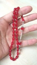 1000gr Gümüş püskül ve 2 yedek habbe ile Kırmızı hamur sıkma kehribar tespih.