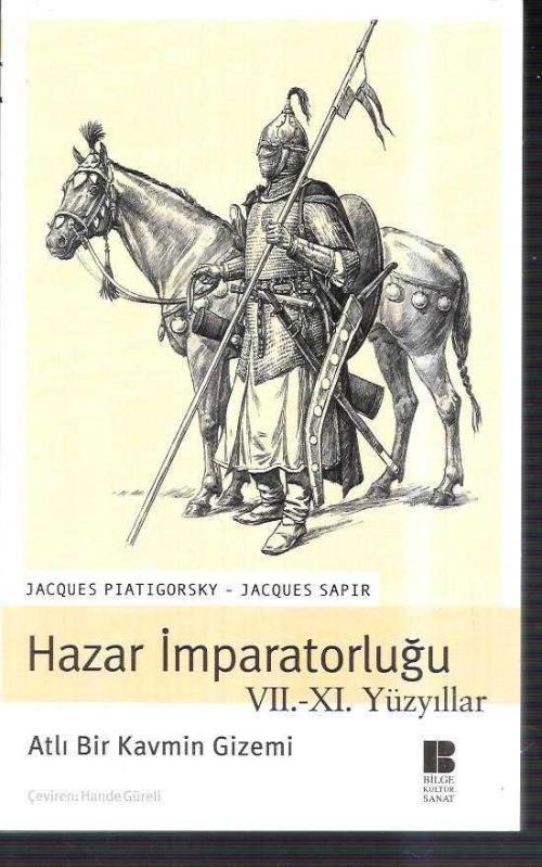 7. - 11. Yüzyıllar Atlı Bir Kavmin Gizemi HAZAR İMPARATORLUĞU, Jacques Piatigorsky, Jacques Sapir tarafından kaleme alınmıştır. Kitap 2007 yılında Bilge Kültür Sanat Yayıncılık tarafından [İstanbul] 9789944425384 ISBN kodu ile yayınlanmıştır. Bu baskının çevirisi Hande Güreli tarafından yapılmıştır. 168 sayfadır. Sayfa bilgisi 2. hamur olarak belirtilmiştir. 7. - 11. Yüzyıllar Atlı Bir Kavmin Gizemi HAZAR İMPARATORLUĞU adlı eser Türkçe dilindedir.