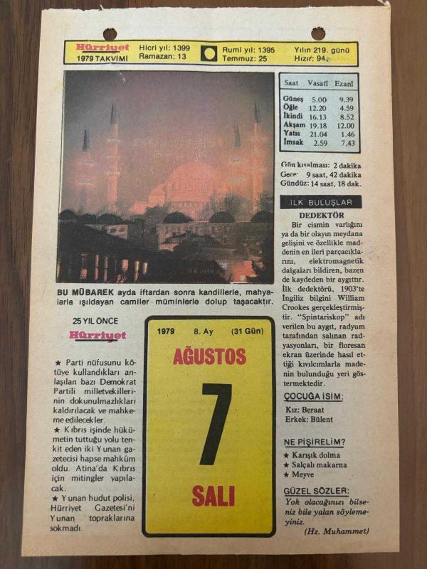 7 AĞUSTOS 1979 - TAKVİM YAPRAĞI - DOĞUM GÜNÜ HEDİYESİ - HÜRRİYET TAKVİMİ - PİS BİR İŞ ROMANI - Lala Mustafa Paşa'nın ölümü (1580), en son 8 ay önce güncellenmiştir.