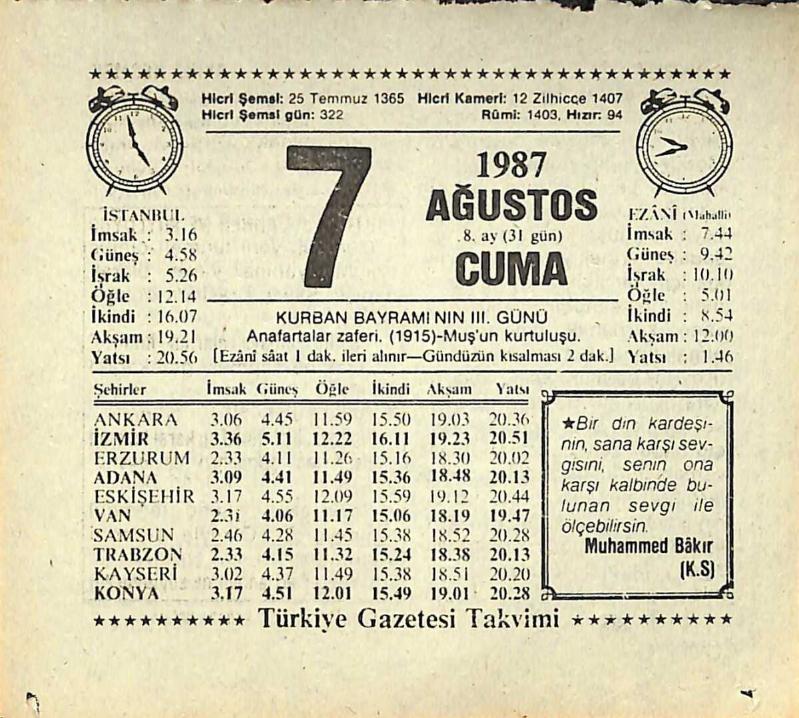 7 Ağustos 1987 Takvim Yaprağı - Doğum Günü Hediyesi EFMN13850, en son 22 gün önce güncellenmiştir.
