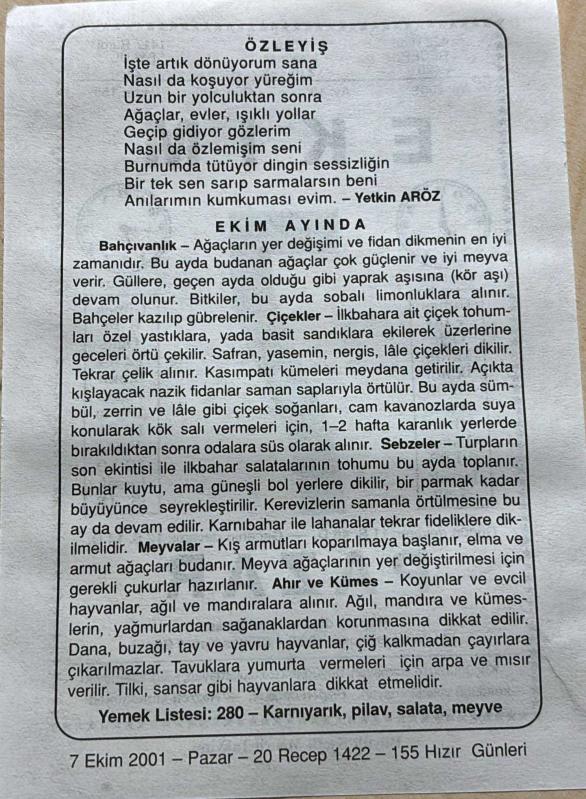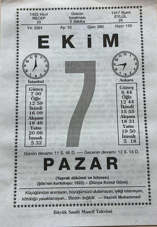7 EKİM 2001 - TAKVİM YAPRAĞI - DOĞUM GÜNÜ HEDİYESİ - BÜYÜK SAATLİ MAARİF TAKVİMİ - HZ.MUHAMMED - YETKİN ARÖZ - EKİM AYINDA; BAHÇIVANLIK, ÇİÇEKLER, SEBZELER, MEYVALAR, AHIR VE KÜMES başlıklı ürün, Efemera, Müzik, Sinema > Belge ve Evraklar > Takvimler kategorisi altında İkinci El olarak satılmaktadır.