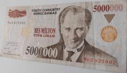 7.EMİSYON 1.TERTİP 5000000 BEŞ MİLYON TÜRK LİRASI ORİJİNAL KAĞIT PARA M05927002