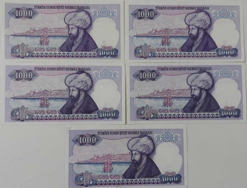 7.EMİSYON 1. VE 2.TERTİP 1.000 TÜRK LİRASI ORİJİNAL GÜZEL NUMARALI BEŞ ADET KAĞIT PARALARDIR. KONDİSYONLARI ÇİL-ÇİLALTI OLARAK DEĞERLENDİRİLMEKTEDİR. NADİR ÜRÜNLERDENDİR. RESMİNİ GÖRDÜĞÜNÜZ ÜRÜN AYNEN GÖNDERİLİR. TÜM ÜRÜNLERİMİZE BAKMANIZ MENFAATİNİZEDİR. SAYGILARIMIZLA.
