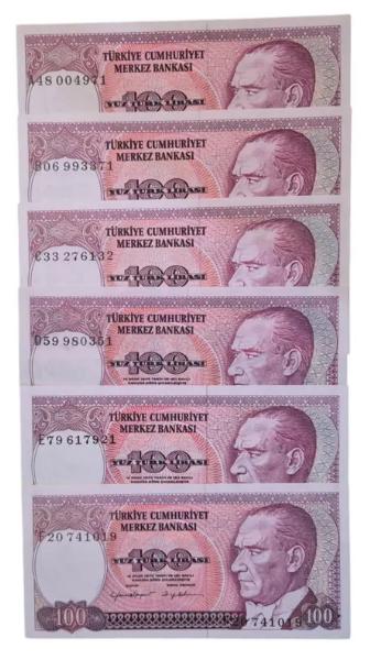 7.EMİSYON 100 LİRA HARF TAKIMI (ABCDEF) ÇİL