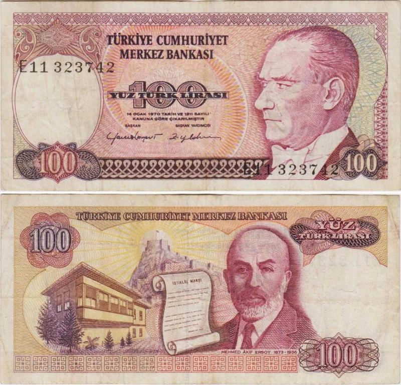 7. EMİSYON 2. TERTİP 100 LİRA E11 NADİR SERİ. MEHMET AKİF ERSOY TEMALI 1984-89. ÇOK TEMİZ KONDİSYON., 8 ay önce satışa sunulmuştur.